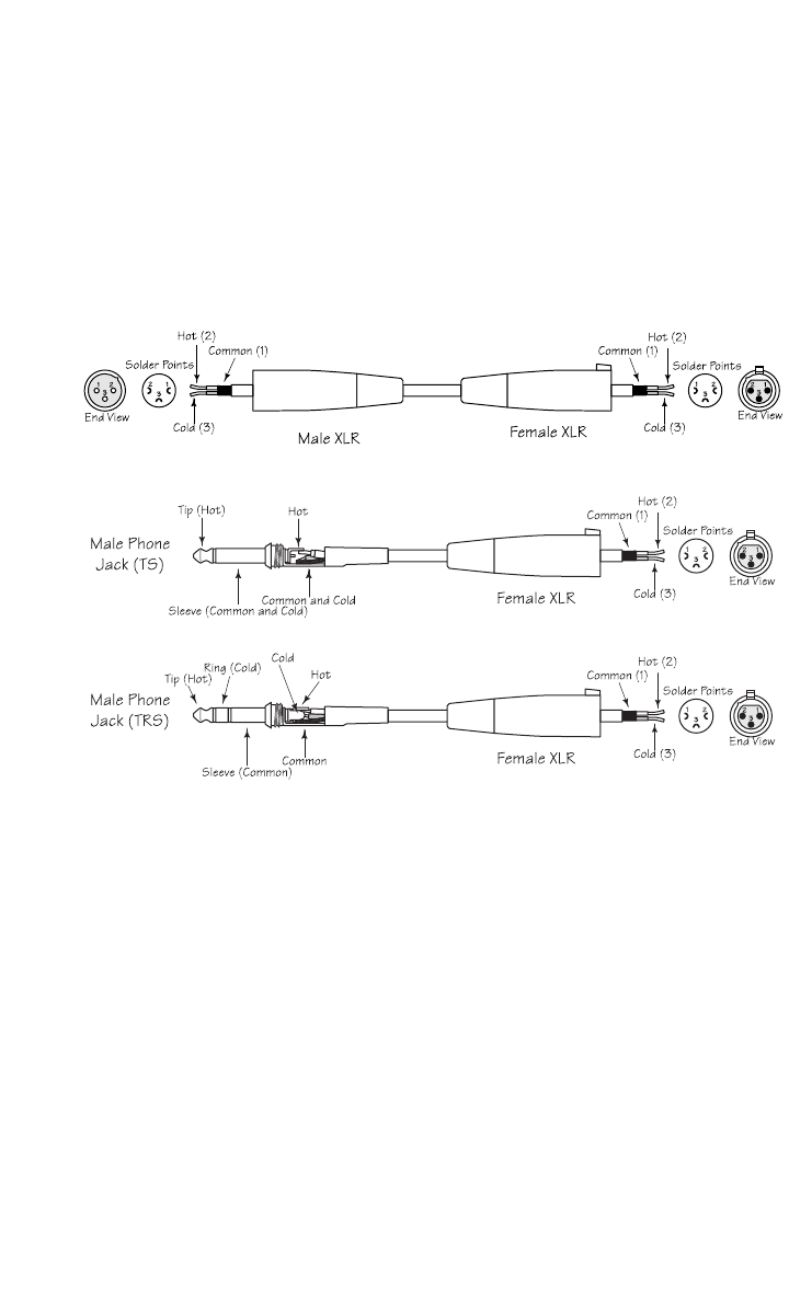 the other end (normally a male XLR end, although some mixers use 1/4" connec-