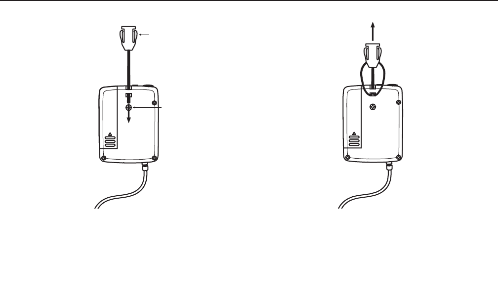 1. Pass the cord from the Transmitter tie clip through the holes on